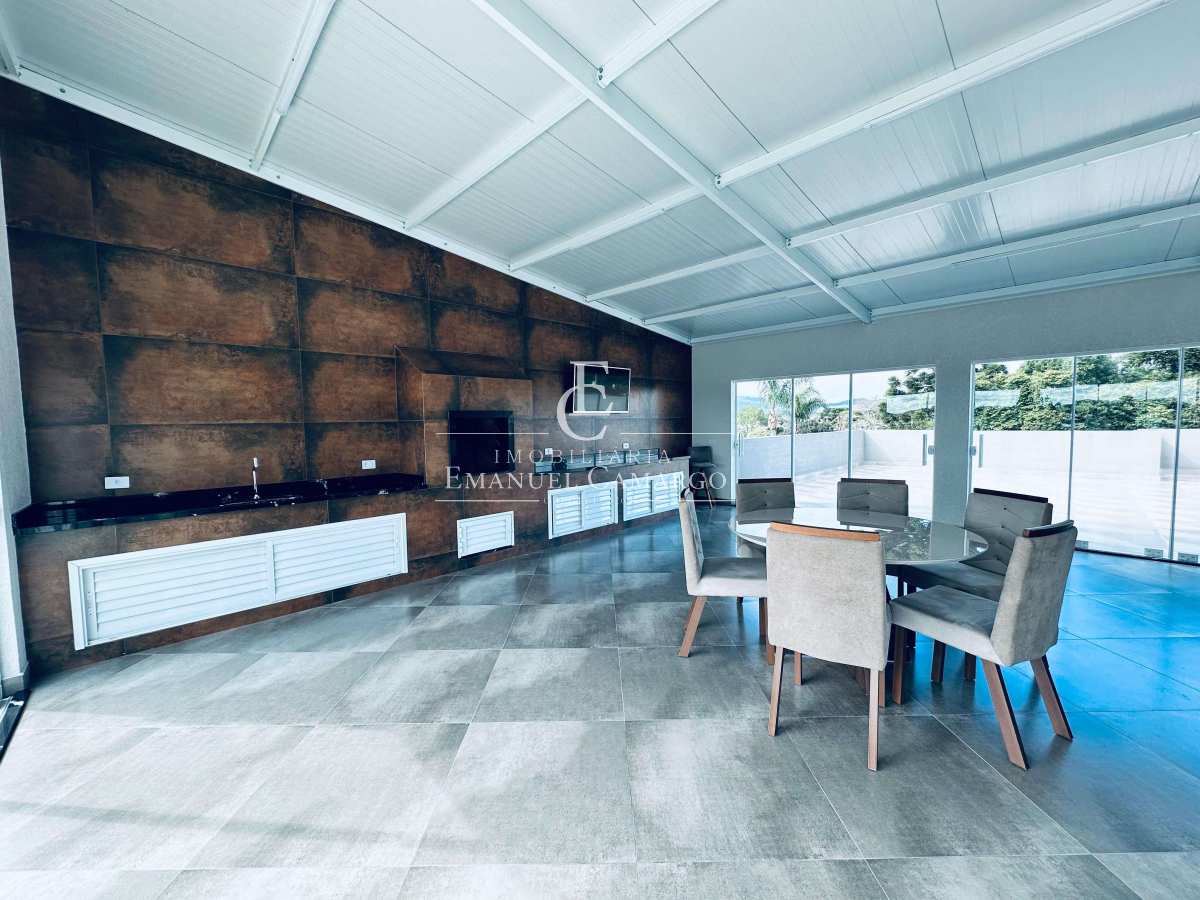 Espaço gourmet com terraço e lavabo