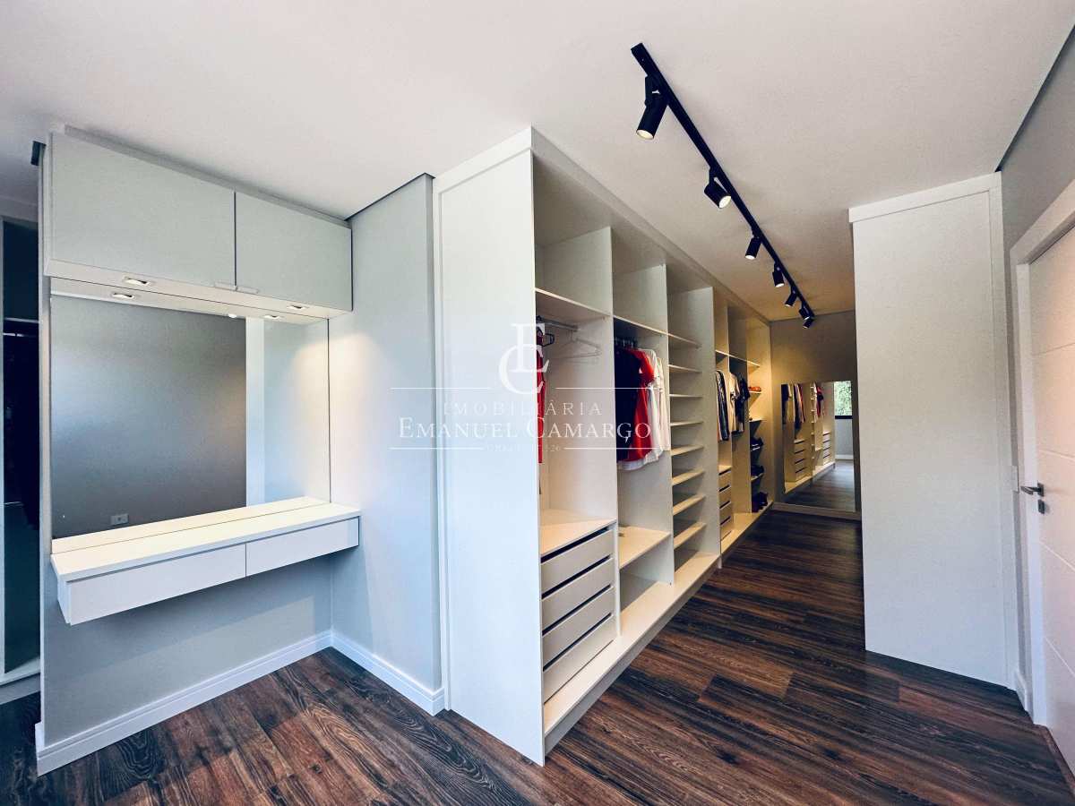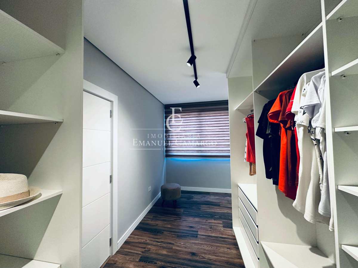1 suíte master com hidromassagem, closet masculino e feminino
