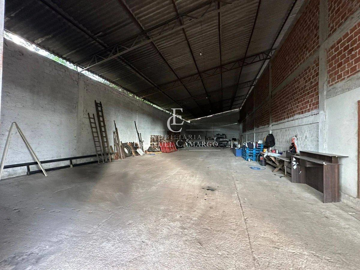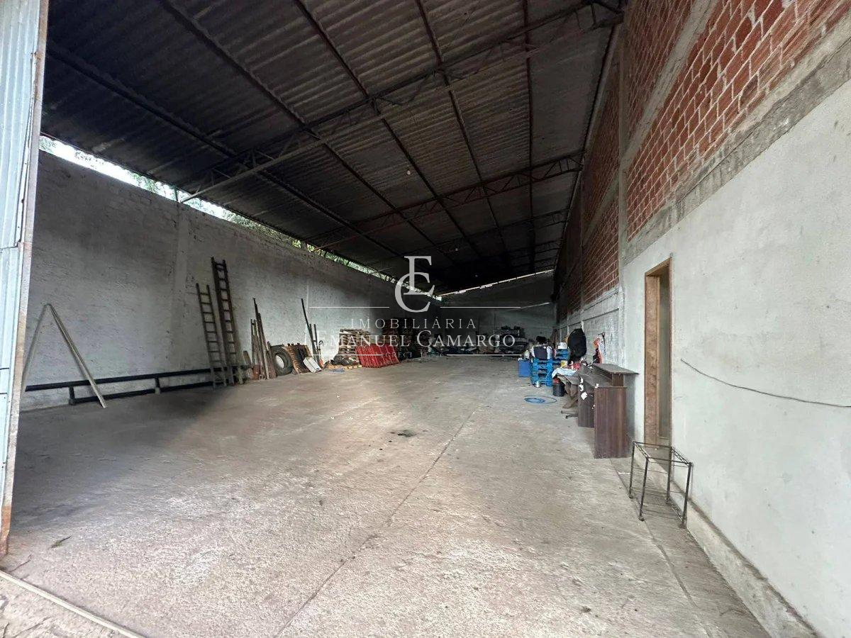 Área medindo 3.600 m2, plana, murada, contendo barracão de aproximadamente 700 m2 .