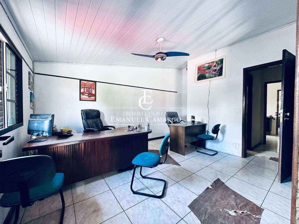 Barracão com 226,04 m², contendo mezanino com banheiro, escritório, lavanderia com churrasqueira e uma edícula nos fundos com 40 m², em terreno de 528 m².