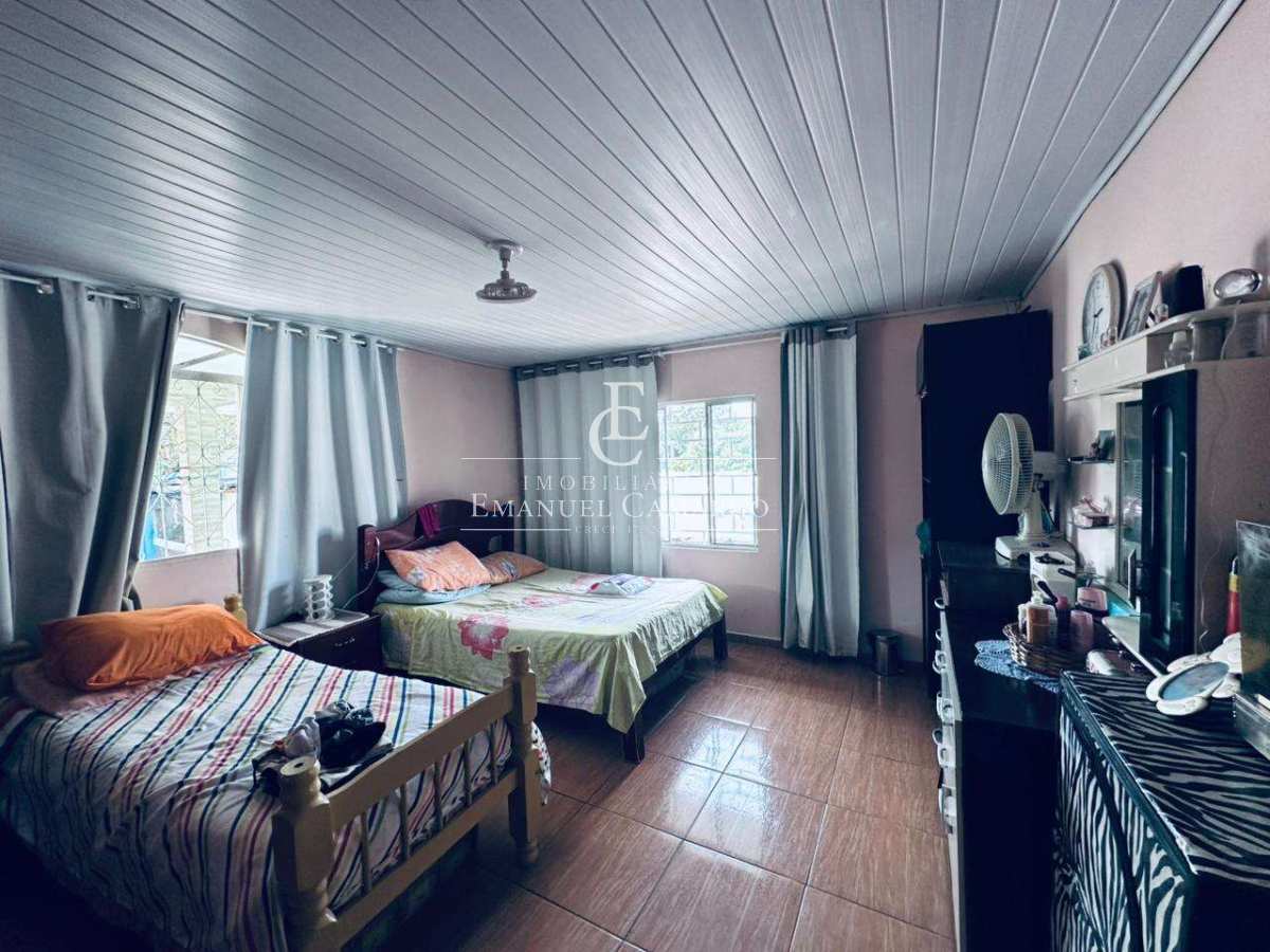 Na frente do terreno há uma segunda casa de madeira, que pode servir para renda, depósito ou moradia adicional.